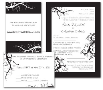 Wedding Invitations Black/White With RSVP & Registry Cards